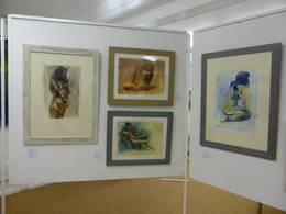 sensibilisiert von Schmerz und Schönheit in einer zerrissenen Welt. Ihre abstrakte Malerei – z.B. im großformatigen „Wasser“ - schaut hinein in eine durchsichtige Tiefe aus ineinander verwobenen Farbtönen.